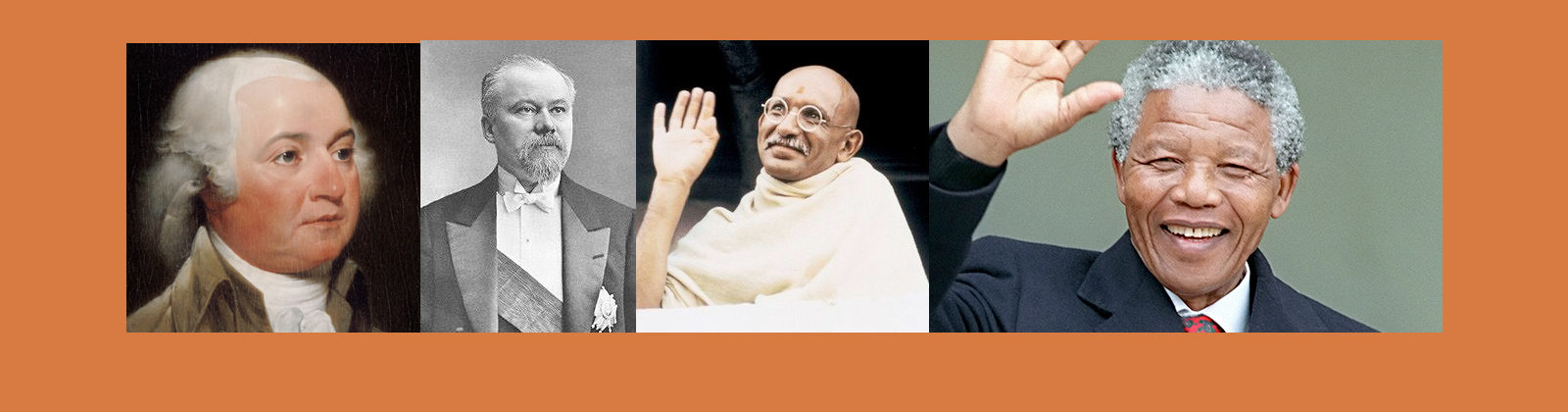 Personnalités sur l’illustration : John Adams, Raymond Poincaré, Gandhi, Nelson Madela